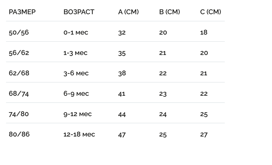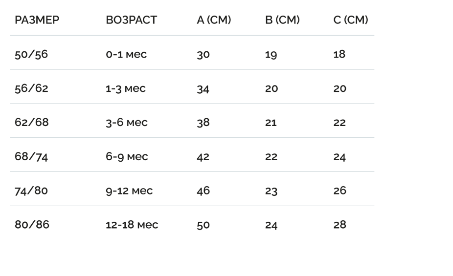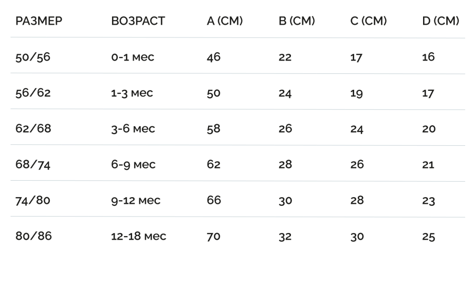 При выборе размера одежды для малыша мы рекомендуем Вам руководствоваться его ростом и замерами, приведенными ниже.